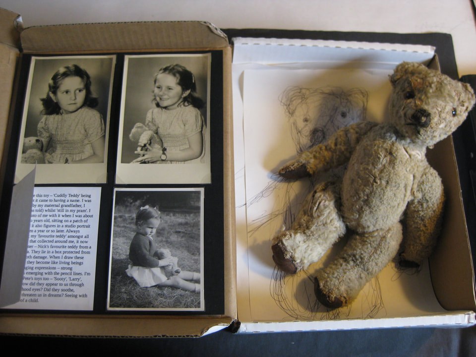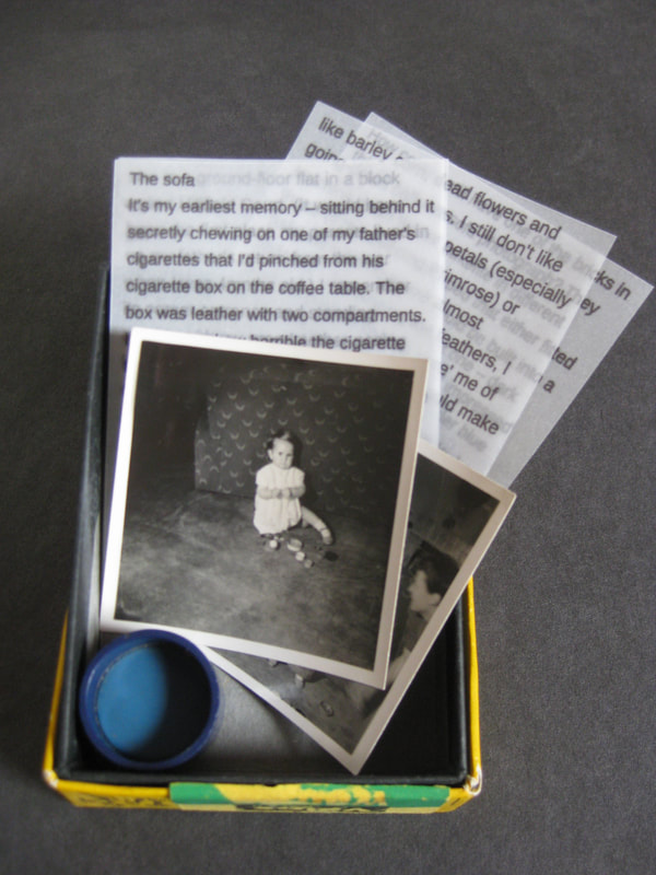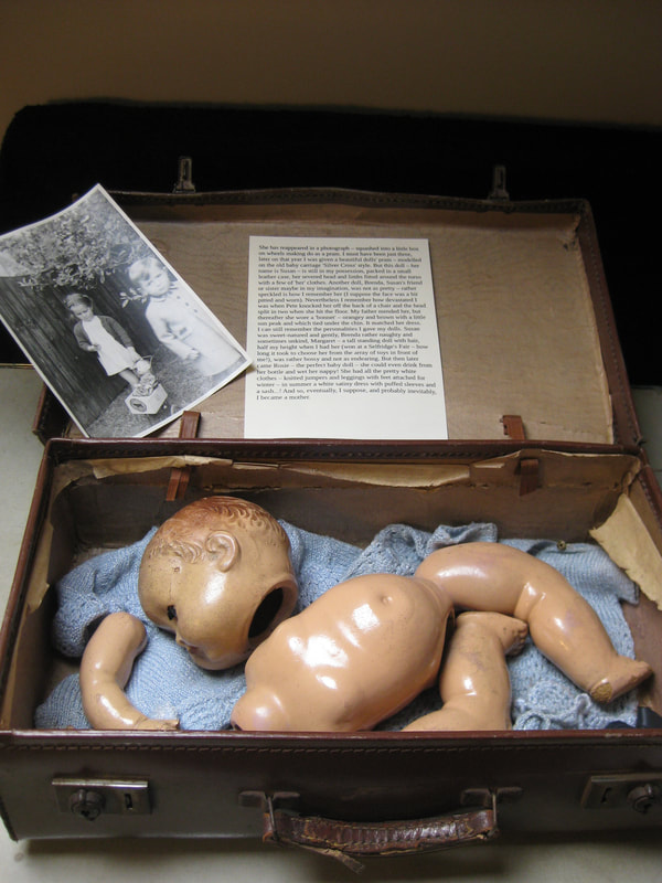 Many objects that belonged to me when I was a child, my mother had kept and so, tucked away in a trunk, they are now in my possession. What should I do with them all? After so many years living in a trunk, it was like a resurrection of memories. Seeing them evoked stories, so I decided to make a series of 'art boxes' for each object with the story typed up on semi-transparent paper. Mapping Memory seemed to be a perfect context for them. Showing them to Kate wondering if they could be included, Kate has since made her own boxes and they live together within this project.