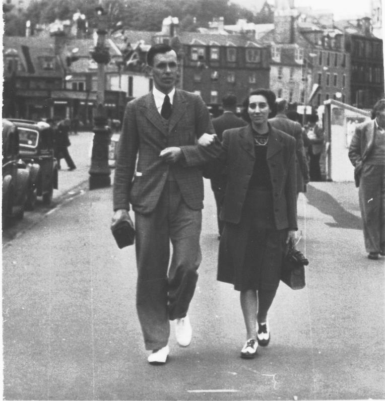 - Photograph (black & white): a couple, sitting on a slatted garden bench outside what appears to be a pub or hotel, pose smiling for the camera. At least he is smiling, a model of relaxation, one arm extended along the seat back behind her, white shirt open at the collar, tie nowhere in sight. His hair, still mainly dark rather than grey, is receding slightly. He is in the foreground, of course, larger than life as always. She – my mum – is smaller, sharper, tucked behind him, almost smiling, but not quite. She looks quite poised, collected;; she could be bitchy behind that cool reserve; in a way she looks like a film star – or a bit part in a B movie. I don’t know where these unkind comments come from. I think I remember the occasion (c. 1993?) but they look impossibly young, and impossibly dated – more like 1960, perhaps earlier. Was I even born..?