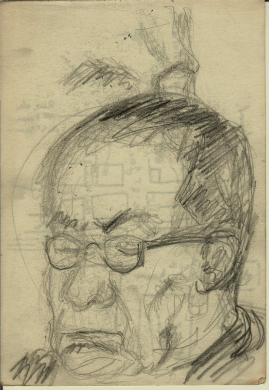 Pete and I definitely went again in 1993 stayed in Hotel Perfect the old patron who shuffled out each morning to get bread for breakfast huge cups of tea or coffee, and then sardines, baguettes, Camembert, red wine again, but always having an evening meal, La Chaumier Pete's favourite... we did some of the exhibitions together Schiele, Picasso, Gustav Moreau, making drawings. I think I first really realised Pete's increasing dependency on drink on this visit the desperation he seemed to feel when walking to a bar or restaurant until he had a glass of beer or wine in his hand wanting me to stay up at night in the bedroom hotel with more wine, pulling in opposite directions re-capturing the past for Pete, art for me... (Pete of course had spent some time living in Paris for a while in his teens between leaving school and Cambridge, making ends meet writing poems on the pavement, living with a girl he met there called France, losing track of time day or night but that is his story...)