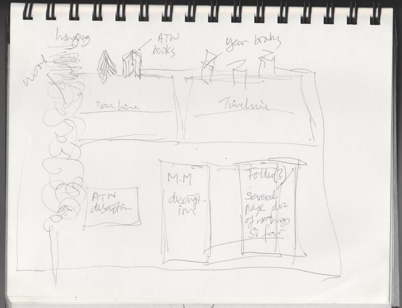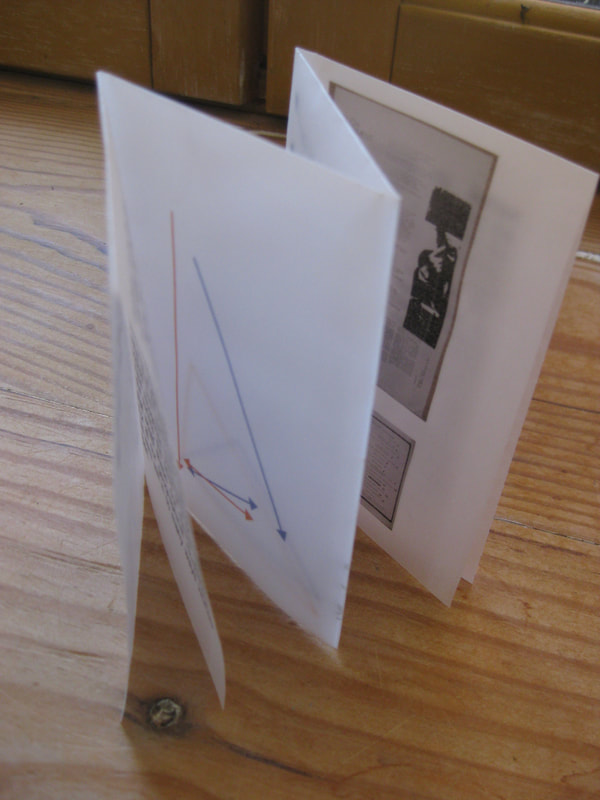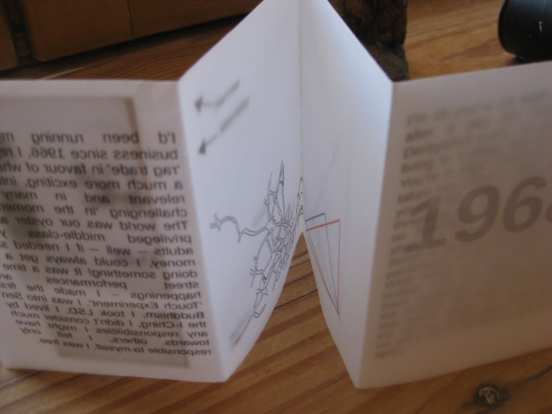 I've attached a couple of images so that you can see what on earth I'm on about. They are (the books I mean, not the photos I've attached) in their nature intended to be unclear and need handling in order to explore them however one wishes. It's an A4 sheet of tracing paper folded lengthwise and then folded forming a zig-zag evenly into 4 sections, thus providing 8 faces on which to work. These are: