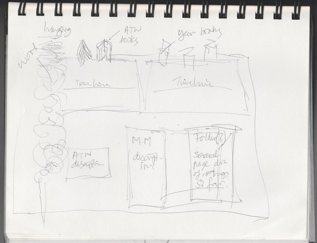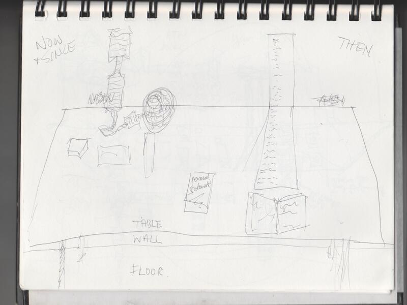 I'm thinking that fuller pieces of writing of that year also need to be available should anyone be interested - probably just in a folder. I've been thinking I could put them together as a 'proposed' collection for a hanging installation, but obviously not realised for this show. I don't think I can come up with a way of hanging stuff without spending longer on site.