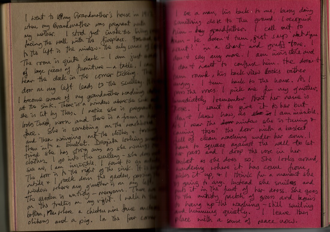 “I have happy memories, unlike you, Kate, of playing in the garden with my brother – round and round the front and back of the house on our tricycles, painting the garden sheds with water…”