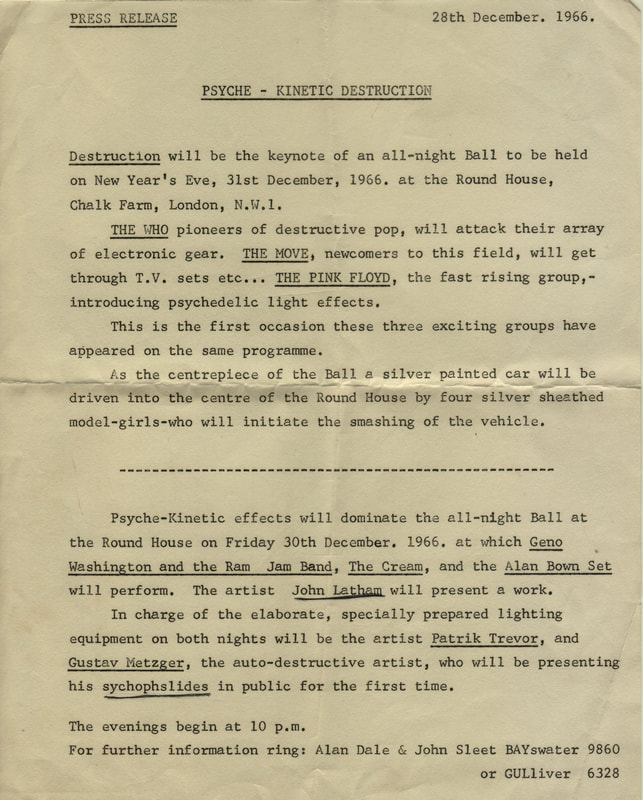 “Portobello – increasingly a hub for rebelliousness and experimentation, macrobiotic foods and street happenings – tube line, the Central – easy access to everywhere that mattered – a founder member of the London New Arts Laboratory in Robert Street – Drury Lane Arts Lab and mime sessions with the Dutch mime artist, Will Spoor – working with theatre groups embracing audience participation – Soho – Better Books – UFO Club in Tottenham Court Road with rock bands and light (liquid crystal) projections, and friends based in Camden Town, Ladbroke Grove, Covent Garden... and then all those rock concerts – memorably 'The 24 hour Technicolour Dream' at the 'Ally Pally' in Alexandra Park in 1967 with Yoko Ono's 'Cut Piece' and everyone trying to get high on banana skins... and all alongside running Dianne Lifton Ltd from home in Elgin Crescent and taxiing around London – Chelsea, Hampstead to boutiques with new designs in my carry-case..."